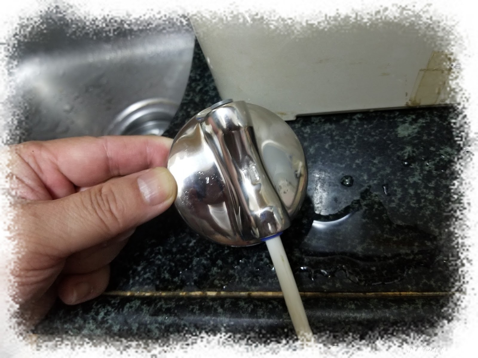 裝上濾芯,再試水。確定沒問題,便放到鋅盤下的廚櫃裡。
